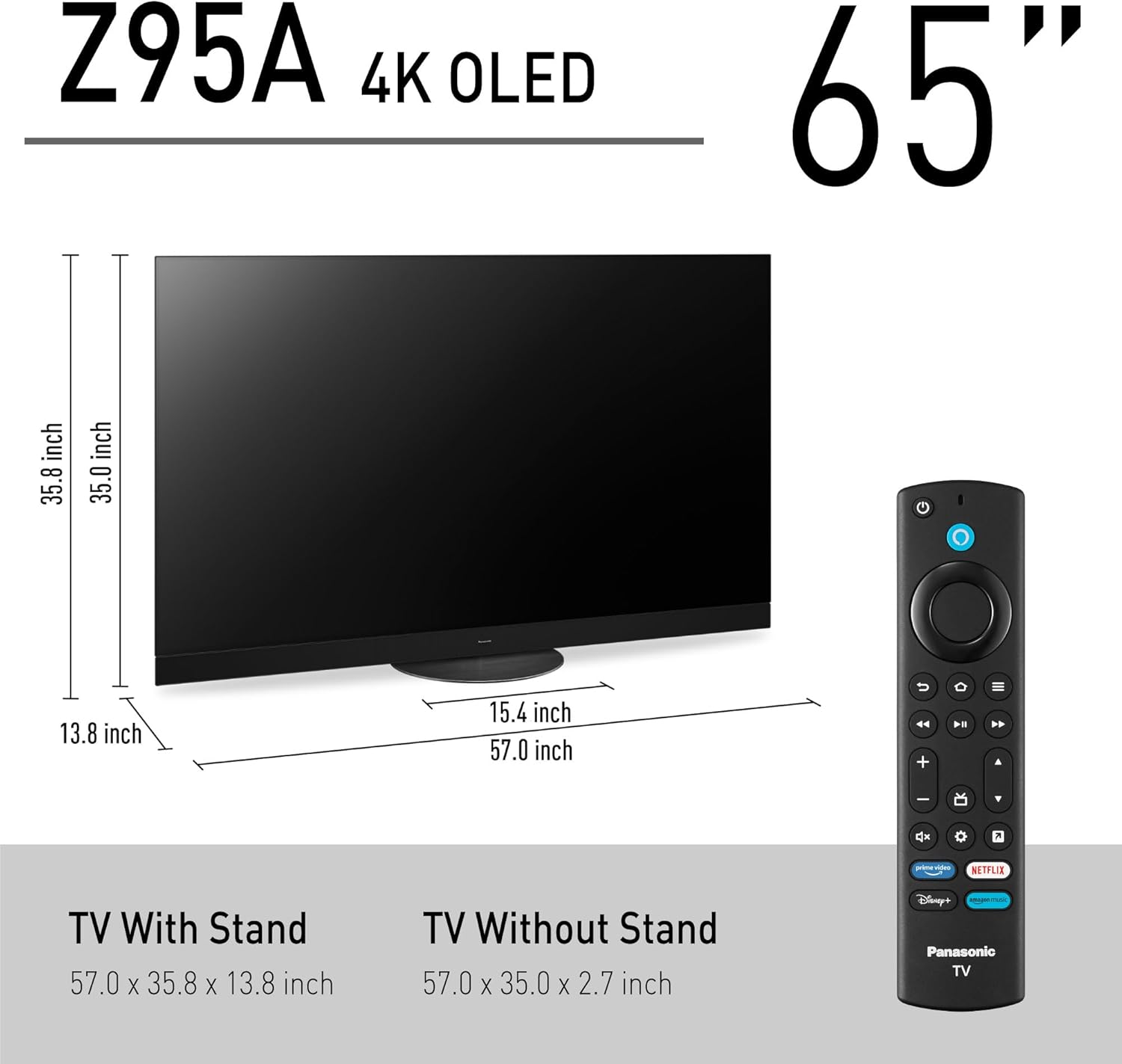 **Specifications:** * **Brand:** Panasonic * **Model:** TV-65Z95AP (2024 Model) * **Display Type:** OLED * **Screen Size:** 65 inches * **Resolution:** 4K Ultra HD * **Refresh Rate:** 144Hz * **HDR Support:** HDR10, HDR10+ Adaptive, Dolby Vision IQ, HLG * **Audio:** 360 Soundscape Pro tuned by Technics, Dolby Atmos * **Smart TV:** Fire TV built-in * **Connectivity:** HDMI2.1, VRR, HFR, AMD FreeSync Premium, NVIDIA G-SYNC * **Features:** * Micro Lens Array * HCX Pro AI Processor MKII * Auto AI Picture Mode * Game Mode Extreme * Hands-Free Alexa * Fire TV Ambient ExperienceWe partner with Amazon and other retailers to provide accurate product information and convenient access to purchase options. As an Amazon Associate we earn from qualifying purchases.
