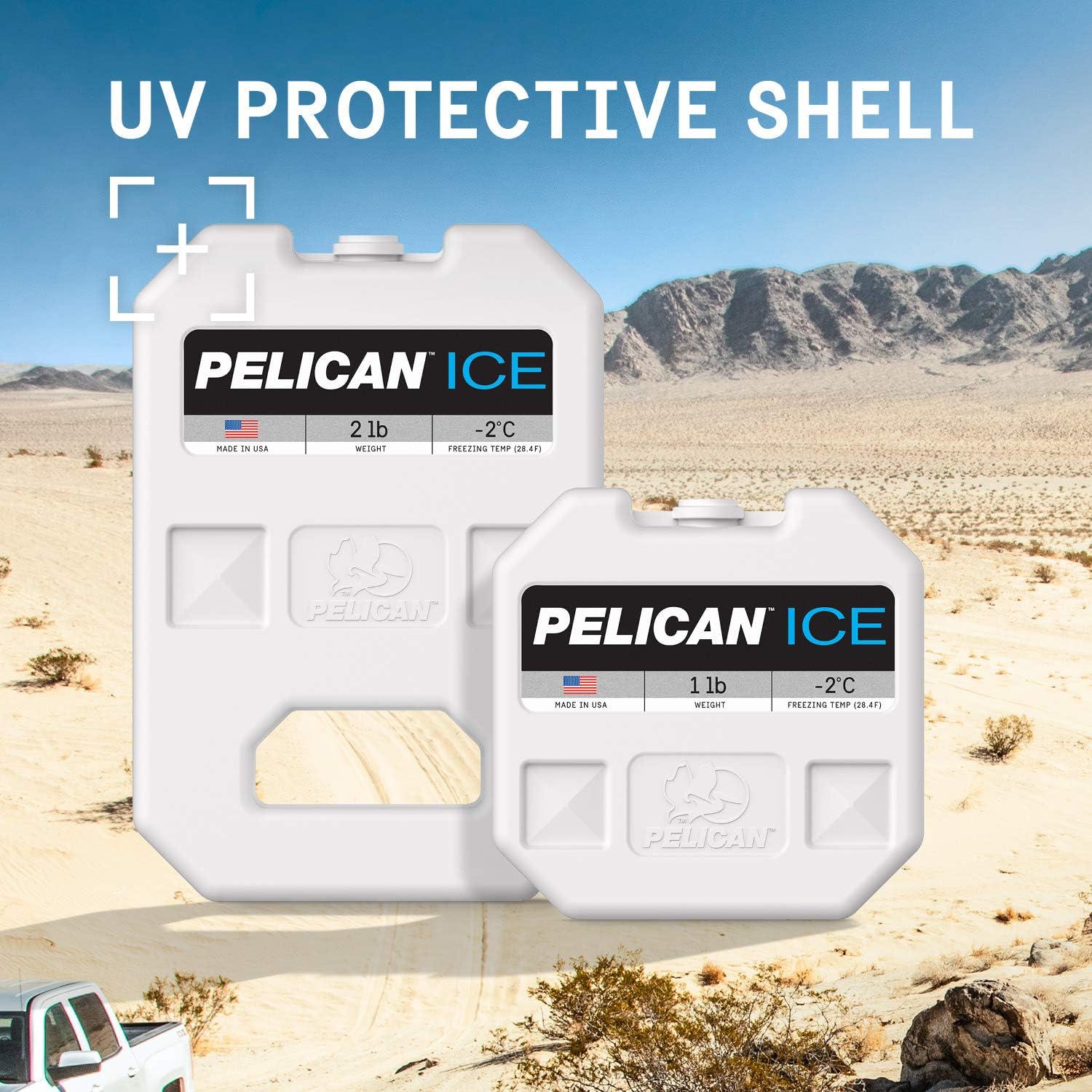 **Specifications:** * **Brand:** Pelican * **Product:** Ice Pack * **Available Sizes:** 1lb, 2lb, 5lb * **Freezing Point:** -2°C/28.4°F * **Material:** UV-protective shell, Non-toxic, BPA-free, and FDA approved * **Features:** * Chills contents faster and stays colder longer * Custom designed to fit Pelican coolers * UV protective shell * Single handle design (2lb) * Dual handle design (5lb) * **Dimensions:** * 1LB: 5.7" x 5.7" x 1.1" * 2LB: 9.1" x 6.3" x 1.4" * 5LB: 8.60" x 2" x 11" * **Origin:** Made in the USAWe partner with Amazon and other retailers to provide accurate product information and convenient access to purchase options. As an Amazon Associate we earn from qualifying purchases.