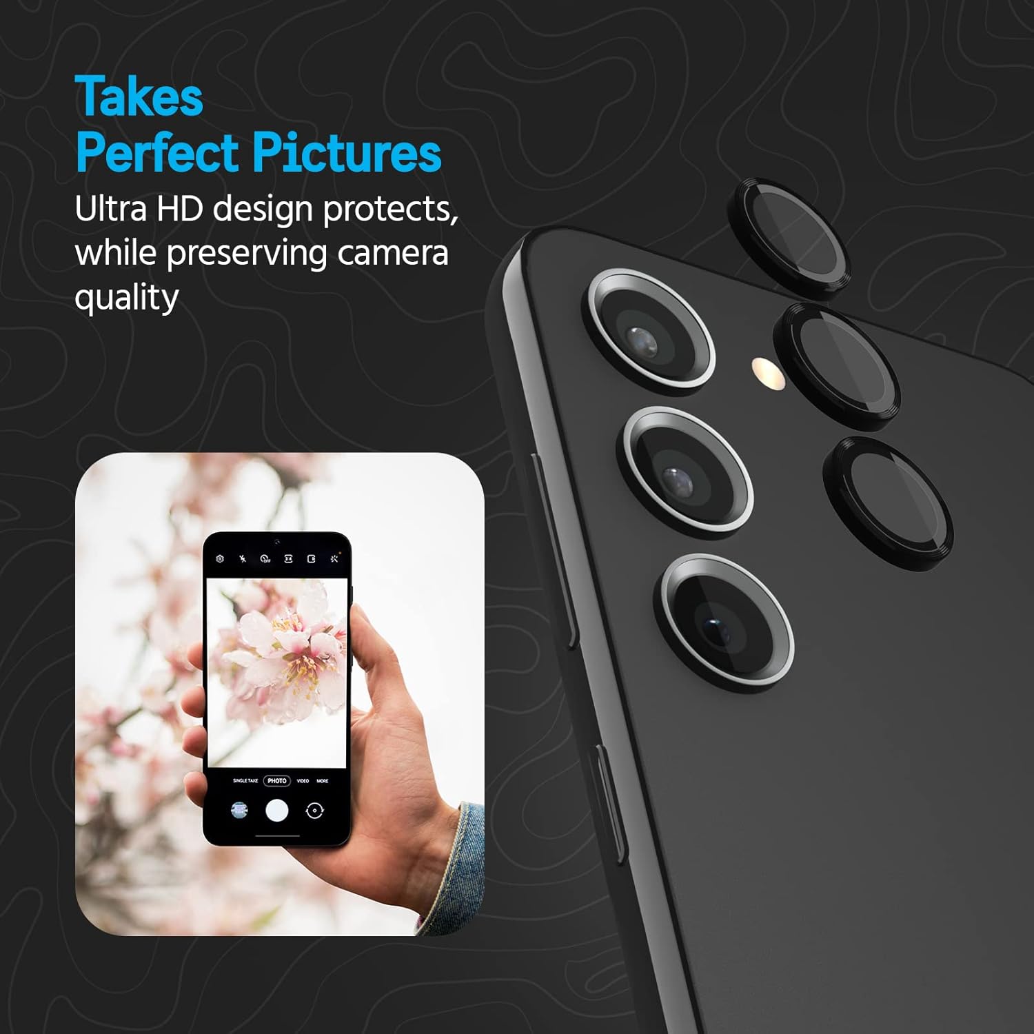 Ensure the clarity of your photos with the Pelican Samsung Galaxy S23 Plus/S23 Camera Lens Protector. This protector is made from 9H tempered glass and metal rings.