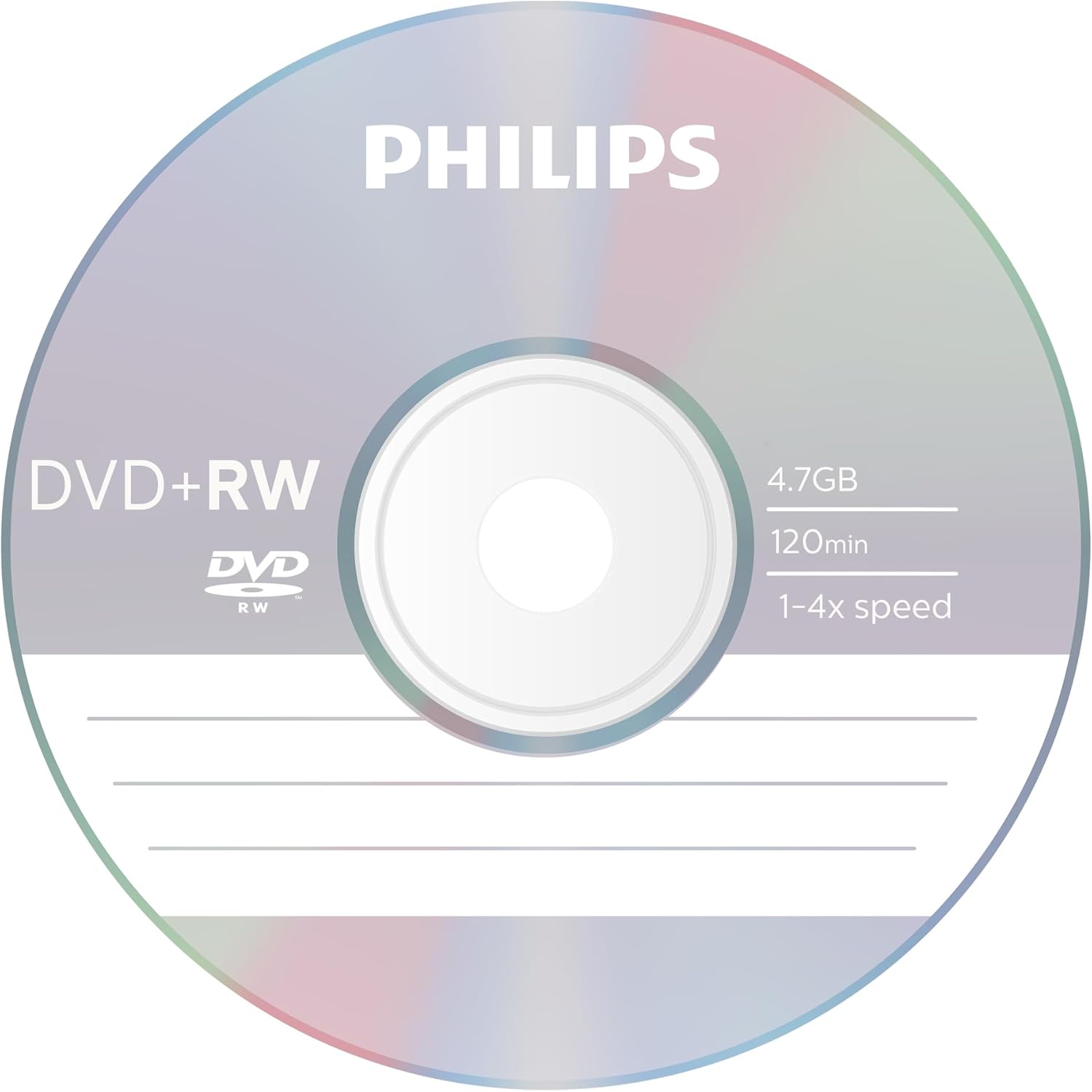 The Philips DVD + RW 4.7GB offers rewritable storage for your data and video needs. With a capacity of 4.7GB and a 4x write speed, these discs are compatible with standard DVD burners and players.