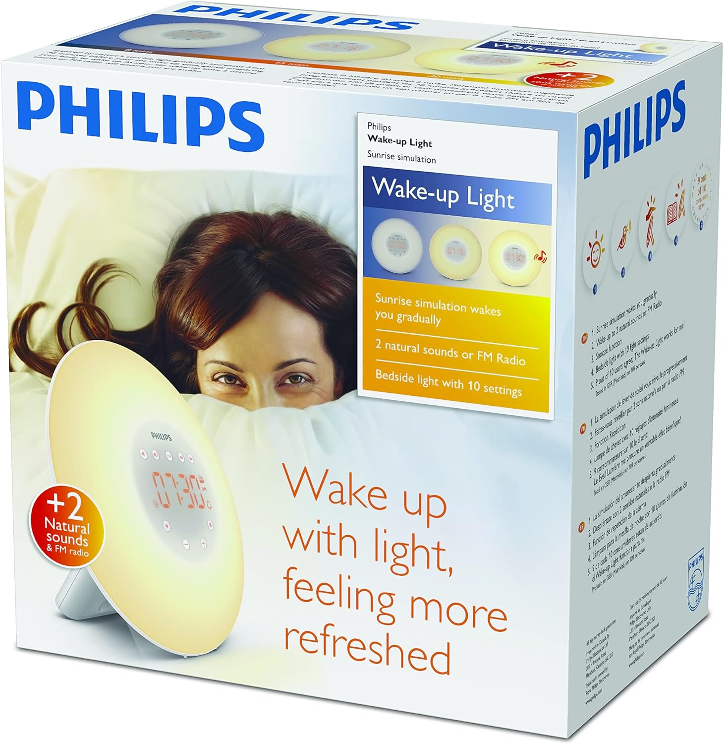 The Philips Wake-up Light helps you start your day feeling refreshed and energized by simulating a natural sunrise. This bedside lamp gradually increases in brightness, gently preparing your body for waking up. With a choice of natural sounds and FM radio, it provides a more pleasant and natural way to wake up than traditional alarms.