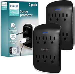 This 2-pack of Philips 6-Outlet Extender Surge Protectors instantly expands your power outlets while providing essential surge protection. The space-saving design and LED indicator make them ideal for any home or office.
