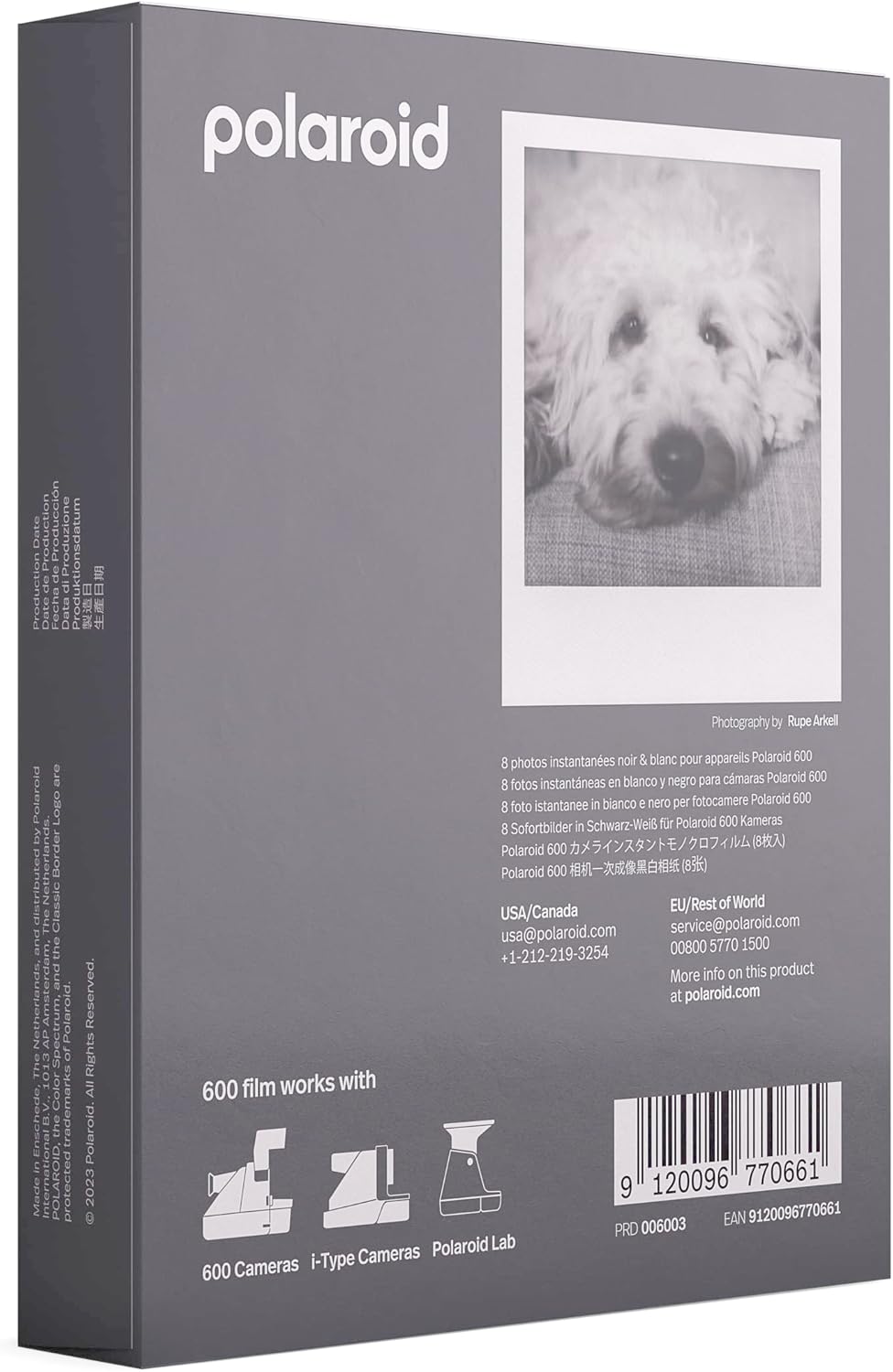 Experience the timeless charm of instant photography with Polaroid B&W Film for 600. This film delivers classic black and white instant photos with the iconic white border, compatible with both vintage and newer Polaroid cameras.