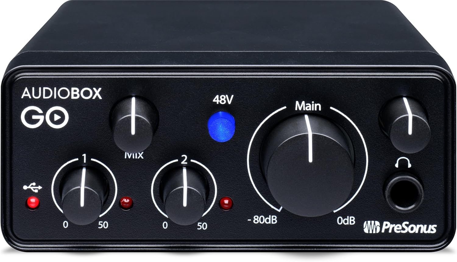 - Audio Interface: PreSonus AudioBox GO USB Audio Interface (2x2/24 bit / 96 kHz)