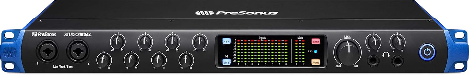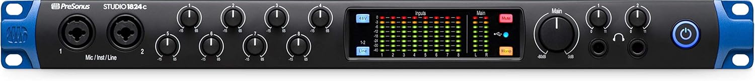 The PreSonus Studio 1824C is a USB-C audio/MIDI interface providing flexible and high-quality recording capabilities. With multiple inputs, outputs, and included software, it's perfect for studio production and mobile recording.