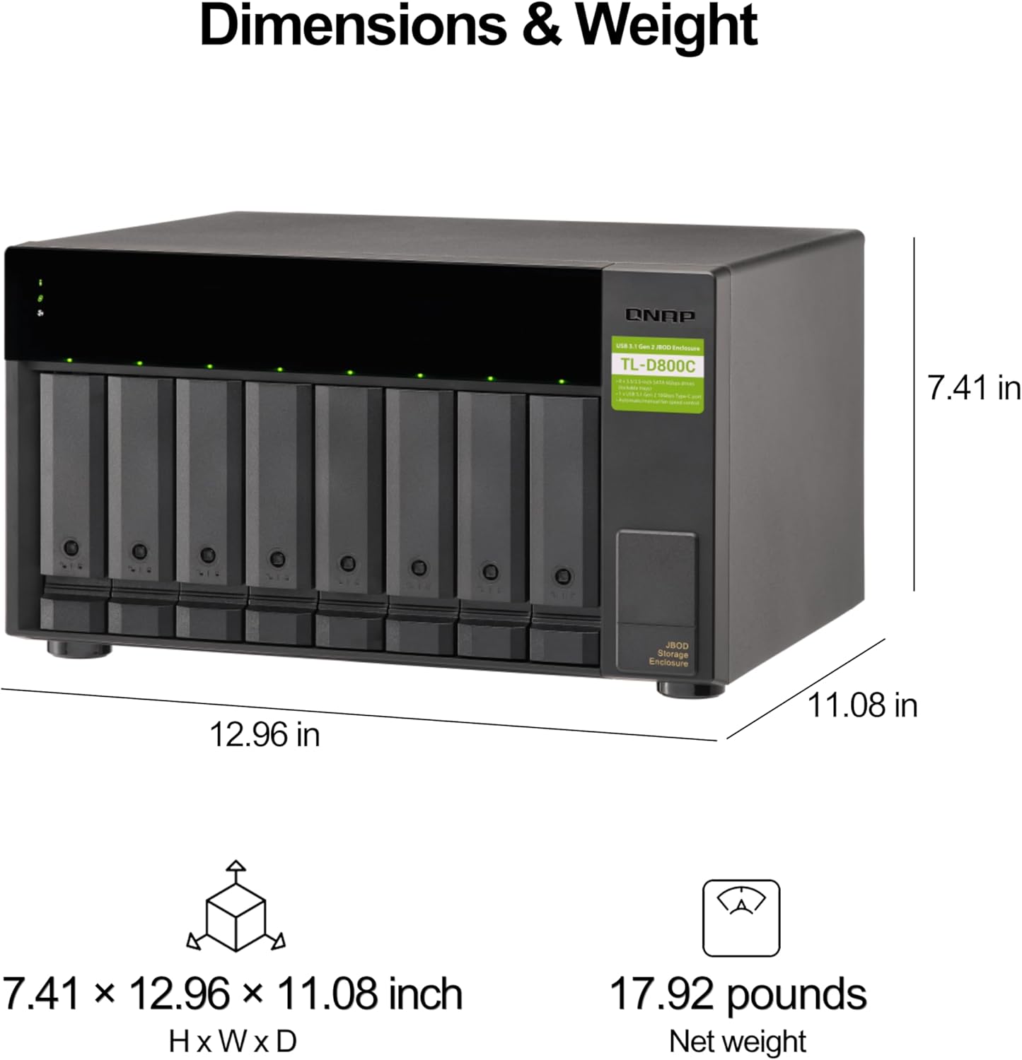The QNAP TL-D800C JBOD enclosure offers a flexible and efficient way to expand the storage of your QNAP NAS, computers, and servers. With eight drive bays and USB 3.2 Gen 2 Type-C connectivity, it delivers high-speed performance and ample storage capacity.