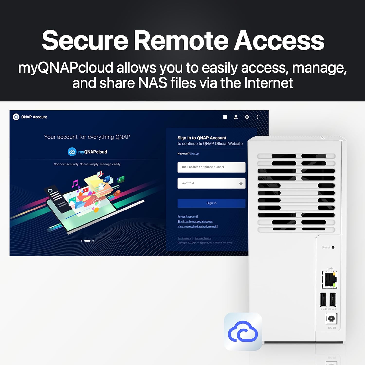 The QNAP TS-233-24ST-US offers a preconfigured and easy-to-use 2-bay home NAS solution with 4TB of storage, designed to simplify file storage, multimedia streaming, and data protection.