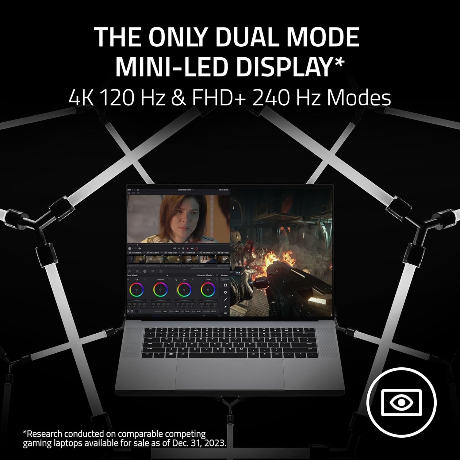 - Display: 16" Dual Mode Mini-LED (UHD+ 120 Hz / FHD+ 240 Hz)