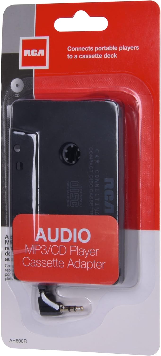 Introducing the RCA Car Cassette Adapter, a simple yet effective solution for playing your portable audio devices through your car's cassette player. Enjoy your CDs, MP3s, and more with the classic convenience of this adapter.