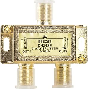 The RCA Dh24spr 3Ghz Digital Plus 2-Way Splitter provides a reliable solution for splitting a coaxial video signal to multiple devices. With gold-plated connectors and a wide bandwidth, this splitter ensures excellent picture and sound quality.