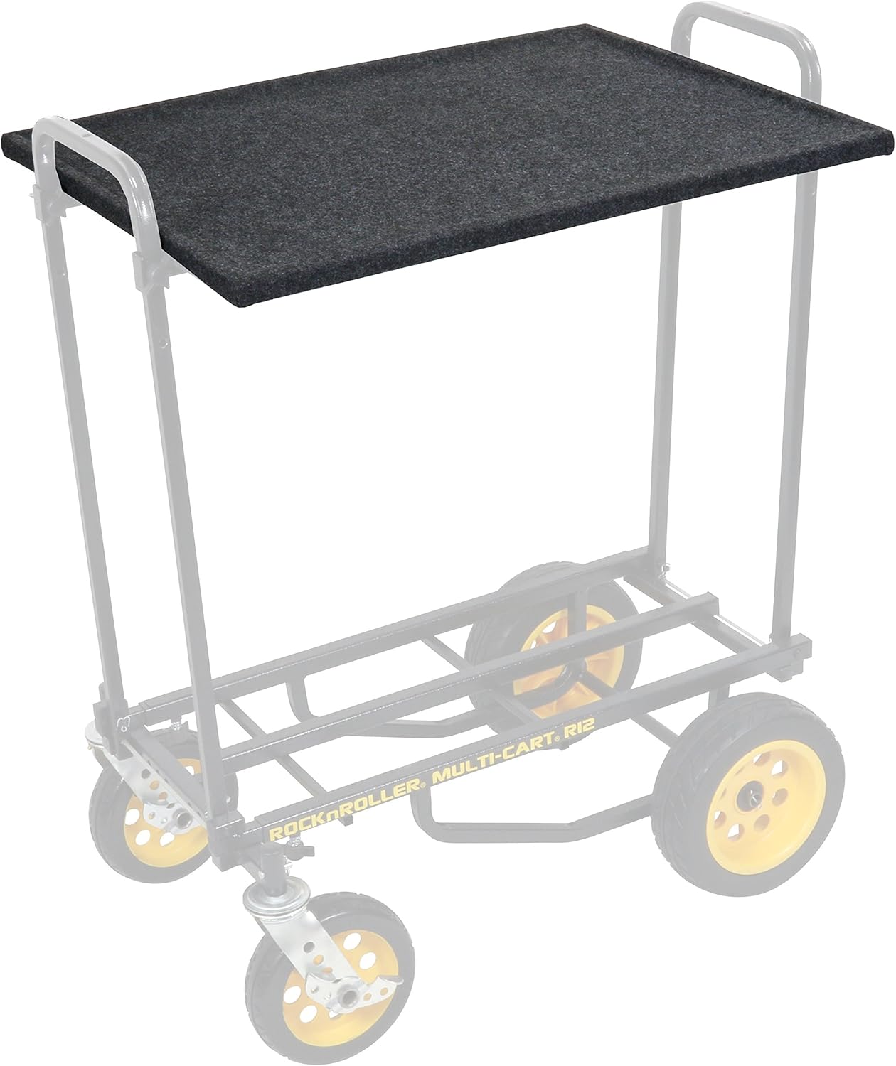 The Rock-N-Roller RSHM2T is designed to convert your Rock-N-Roller cart into a versatile mobile workstation. This multi-media shelf features a large main shelf (24" x 31") and an upper shelf (10" x 31") to accommodate sound equipment, film production tools, and other professional on-site applications. Constructed with heavy-duty carpet for durability, the shelves fold for easy storage and transport. The upper shelf holds up to 50 lbs, and the combined shelves can handle up to 200 lbs. *Cart sold separately.*