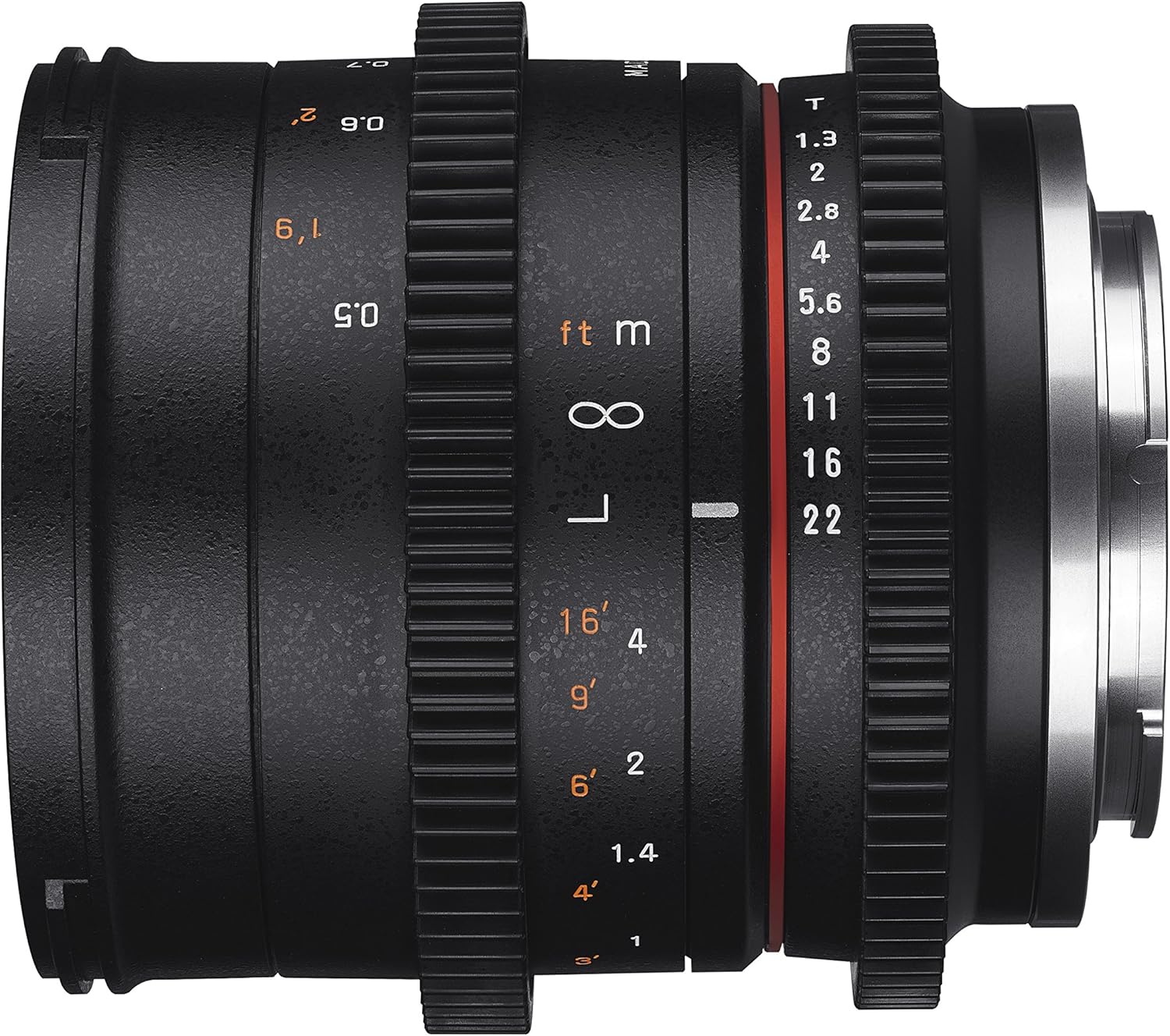 The Rokinon 50mm T/1.3 High Speed Cine Lens is designed for professional video and filmmaking. Its fast T/1.3 aperture excels in low light and provides shallow depth of field, while the decoupled aperture and focus gearing offer smooth, quiet adjustments. The lens's optical design includes aspherical elements and multi-layer coatings for exceptional image quality. Compatible with Fujifilm X Mount cameras, this lens is a versatile tool for creating captivating cinematic visuals.