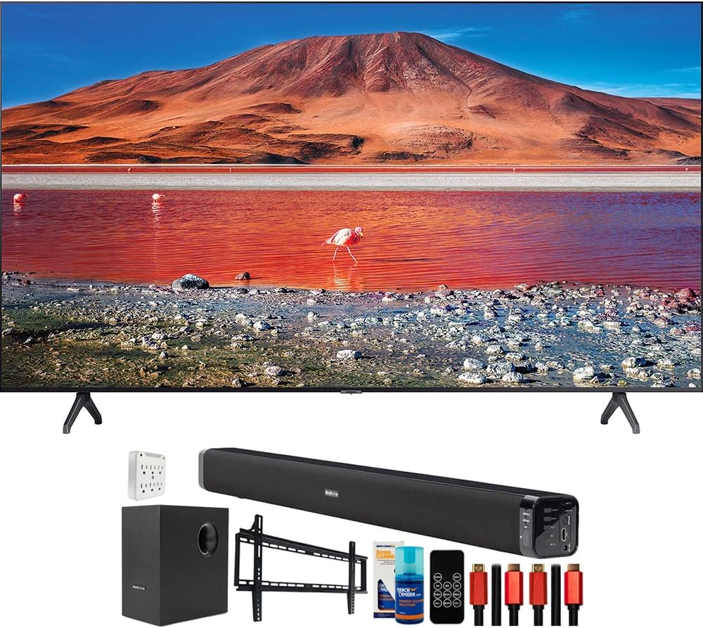 The Samsung UN82TU7000 82" 4K Ultra HD Smart LED TV delivers stunning picture quality with vibrant colors and sharp details. With smart features and a sleek design, this TV transforms your viewing experience. Enhanced by the Deco Gear Home Theater Bundle for a complete entertainment setup.
