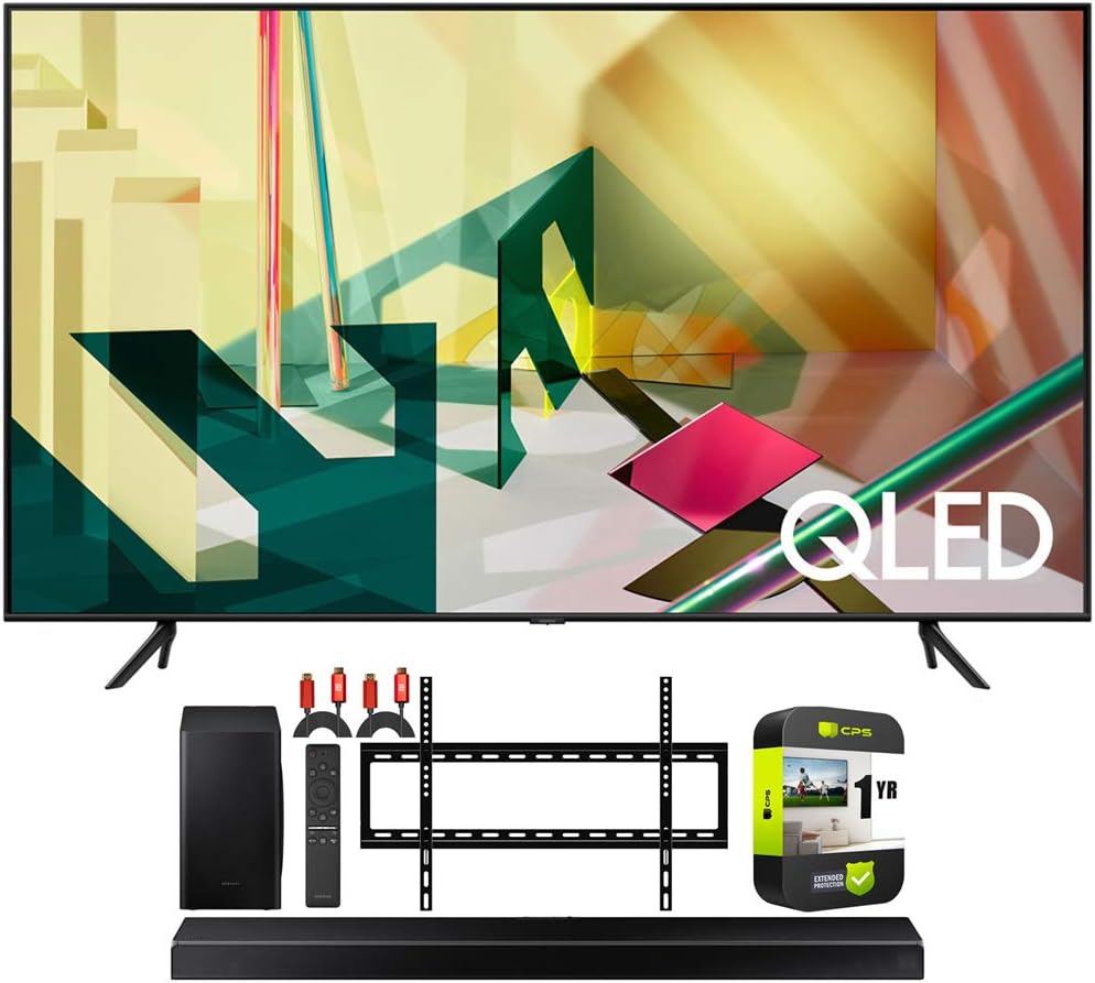 The Samsung QN55Q70TA 55-inch 4K QLED Smart TV Bundle delivers stunning picture quality and dynamic audio for an unparalleled home entertainment experience. Includes HW-Q60T 5.1ch Soundbar, Wall Mount, and Deco Gear HDMI Cables.