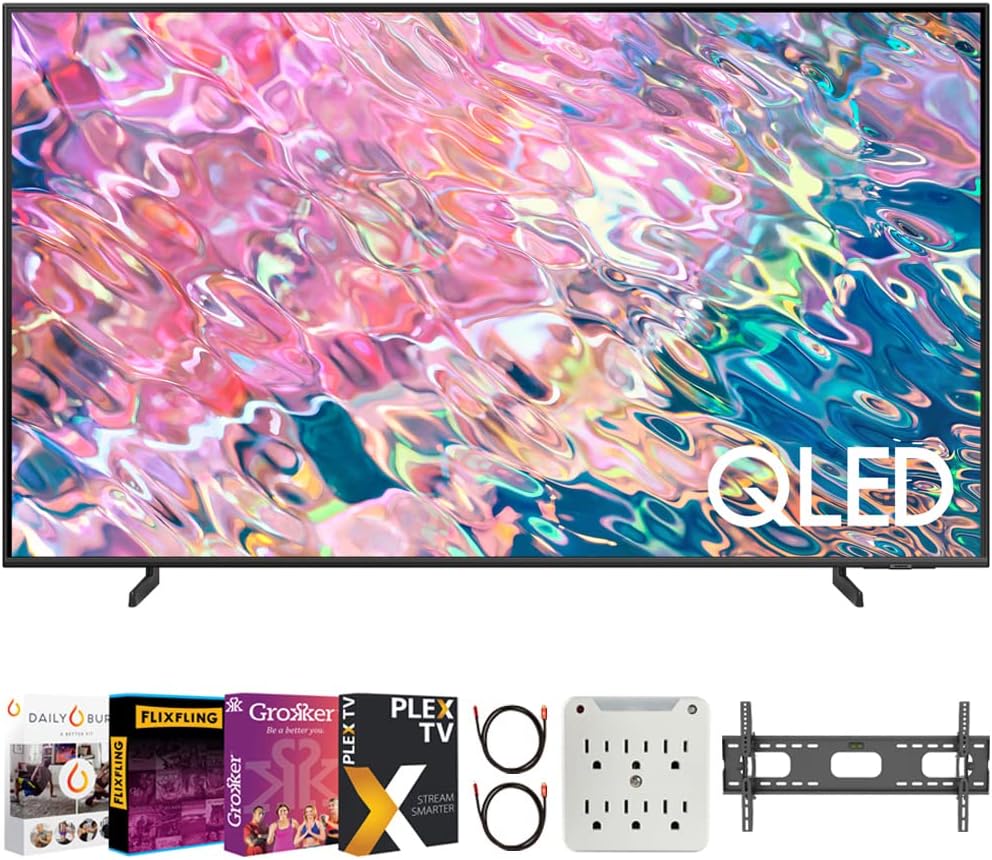 Experience vibrant colors and lifelike details with the Samsung QN55Q60BAFXZA QLED 4K Smart TV. Featuring Quantum Dot technology, Quantum HDR, and smart features, this TV delivers an immersive entertainment experience. This bundle includes everything you need to enhance your viewing experience, making it a perfect addition to your home.