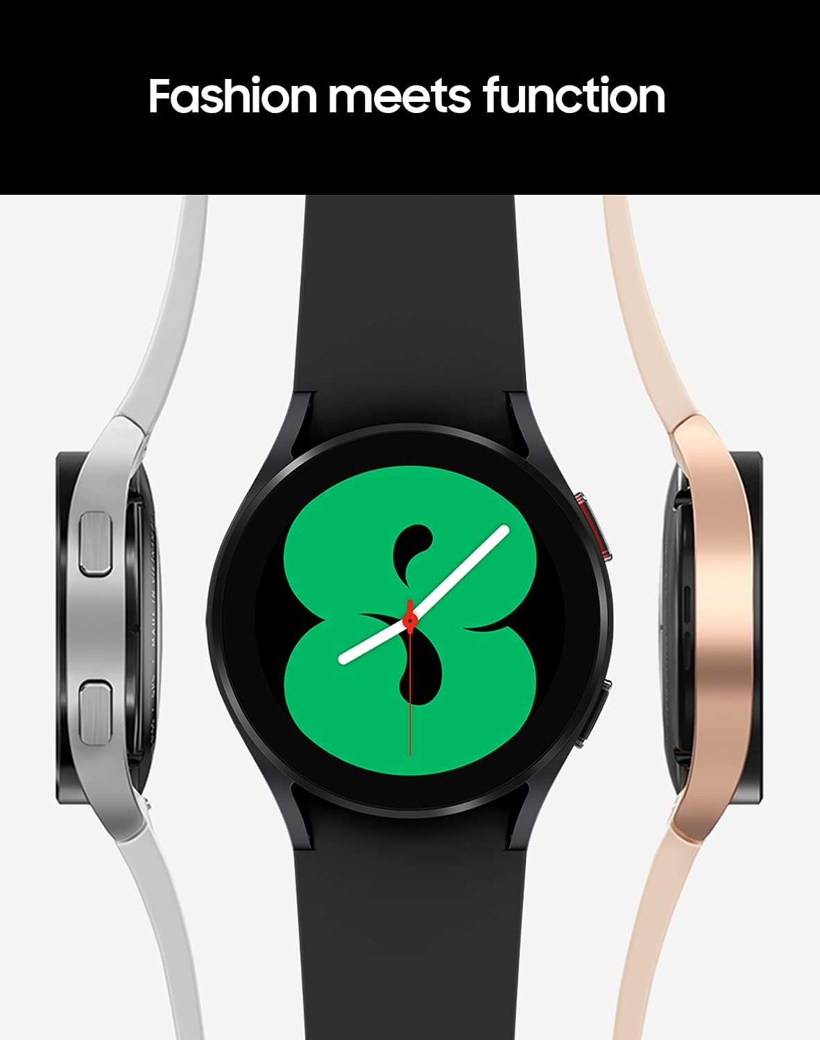 The Samsung Galaxy Watch 4 is the ultimate smartwatch for health and fitness tracking. Monitor your body composition, track your sleep, and take care of your heart with ECG monitoring. Its advanced workout tracking recognizes various activities automatically. Stay connected with calls, texts, and notifications right on your wrist. With Google integration and a stylish design, the Galaxy Watch 4 is your perfect companion for a healthier, connected lifestyle.