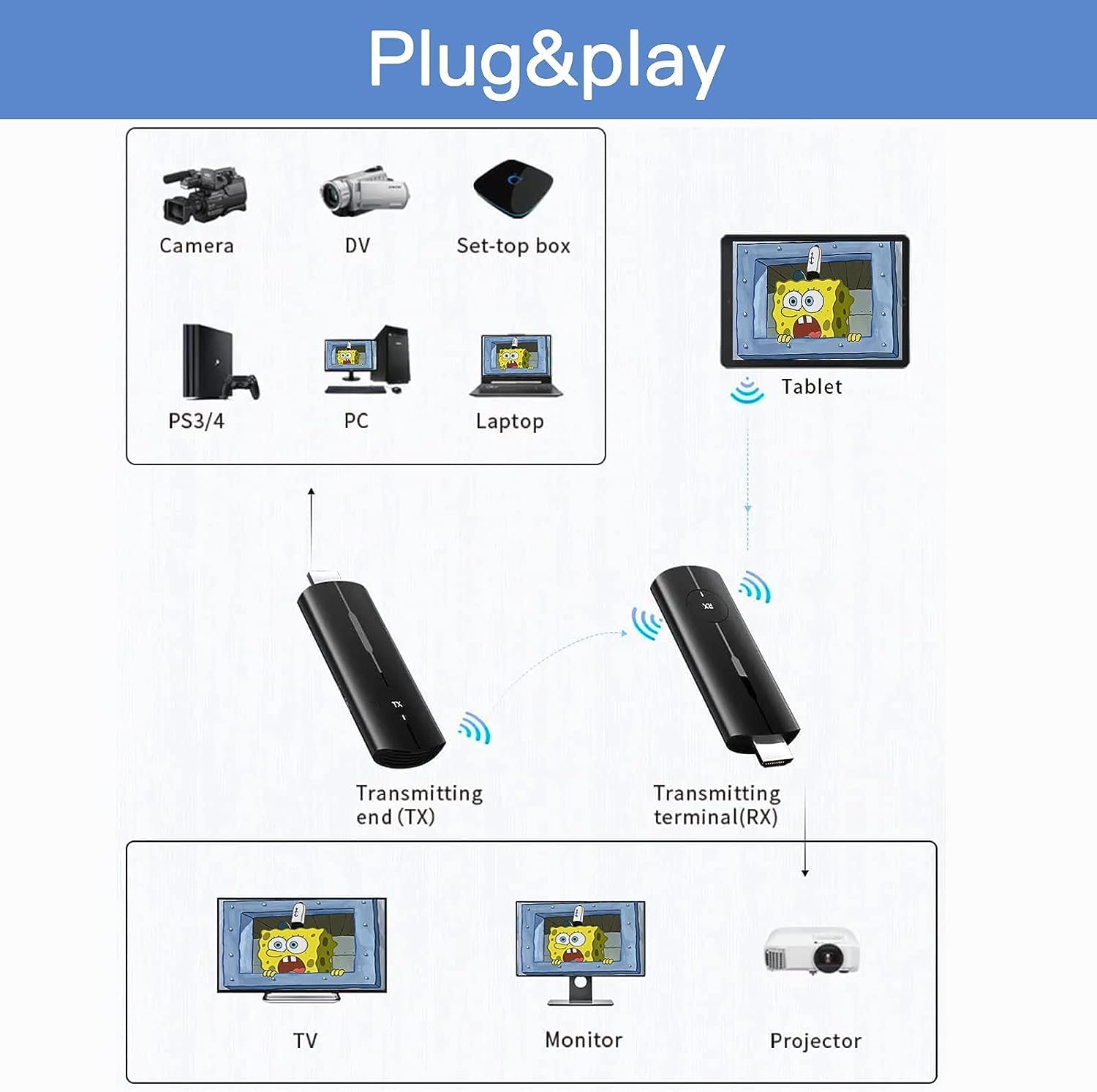 Introducing the Wireless HDMI Transmitter and Receiver kit, designed to provide a seamless and clutter-free solution for streaming video and audio. This compact and lightweight kit supports 2.4/5GHz and 4K HD, making it perfect for streaming from laptops, PCs, TV boxes, and projectors to monitors with low latency and high frame rates.