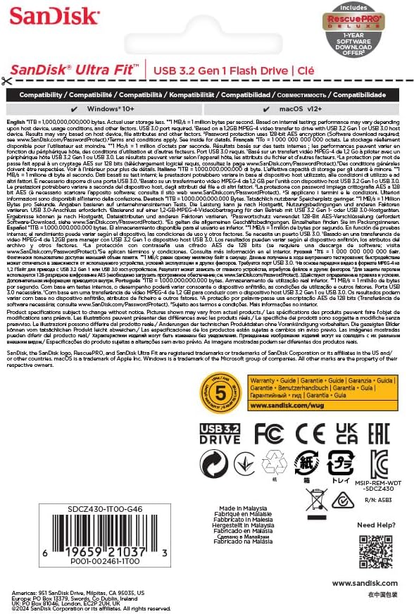 Experience ultimate portability and speed with the SanDisk 1TB Ultra Fit USB 3.2 Gen 1 Flash Drive. This ultra-compact drive is designed to stay plugged in, providing instant storage expansion for laptops, game consoles, and car audio systems. Enjoy blazing-fast transfer speeds up to 400MB/s, allowing you to move files quickly and efficiently.