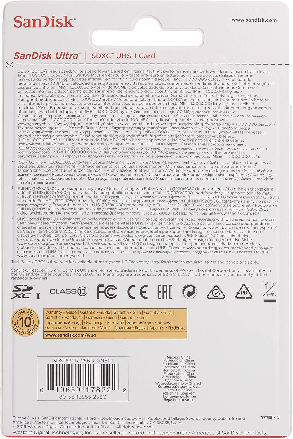 * **Capacity:** 256GB * **Type:** SDXC * **UHS Speed Class:** U1 * **Speed Class:** Class 10 * **Read Speed:** Up to 100MB/s * **Video Recording:** Full HD (1920x1080) * **Durability:** Water-proof, Temperature-proof, X-ray proof, Shockproof * **Compatible Devices:** Cameras, Camcorders, PCsWe partner with Amazon and other retailers to provide accurate product information and convenient access to purchase options. As an Amazon Associate we earn from qualifying purchases.
