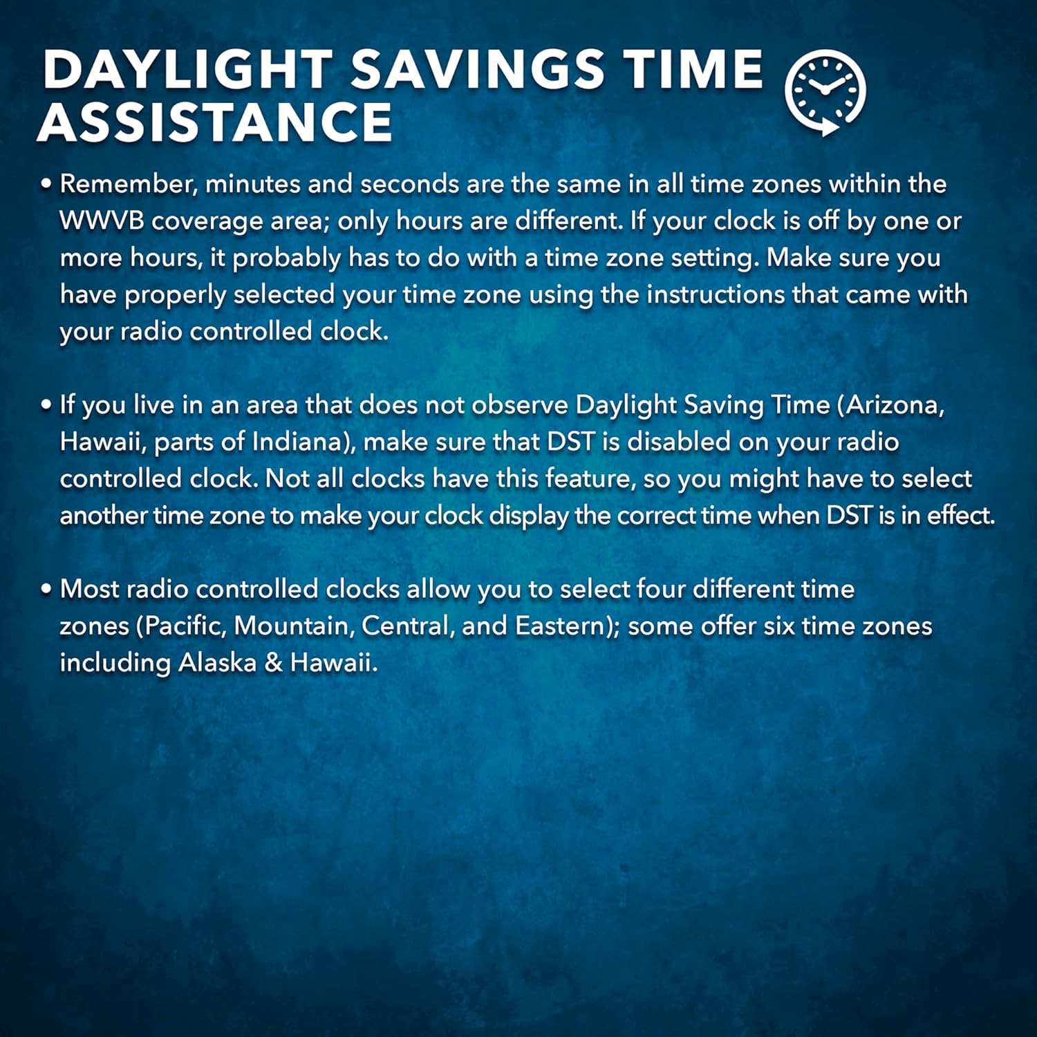 - Accuracy: Atomic (Automatically synchronizes with WWVB radio broadcast)
