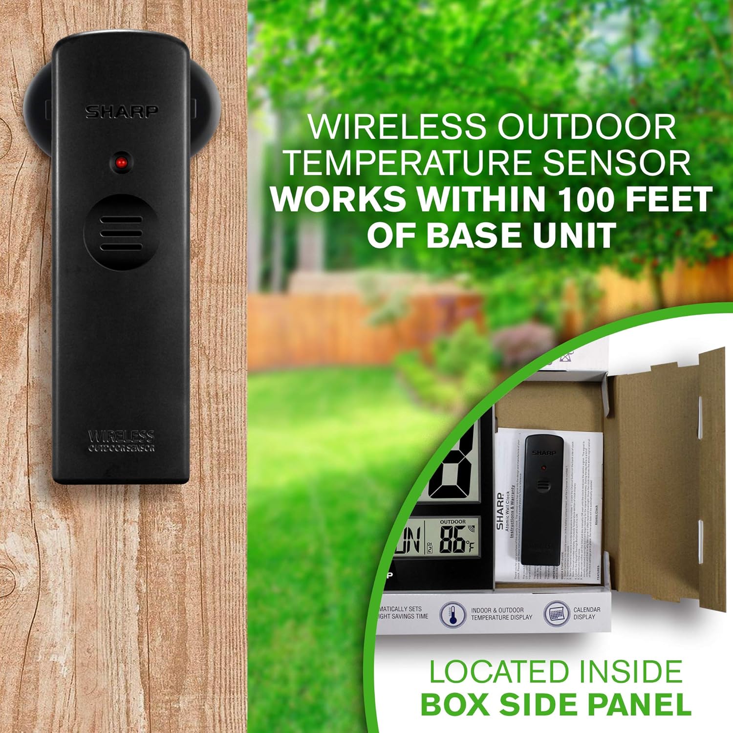Introducing the Sharp Atomic Clock. This clock automatically synchronizes with the US Government's WWVB radio broadcast, providing unparalleled accuracy. Featuring a jumbo 3" display and indoor/outdoor temperature readings, it's both practical and easy to read.