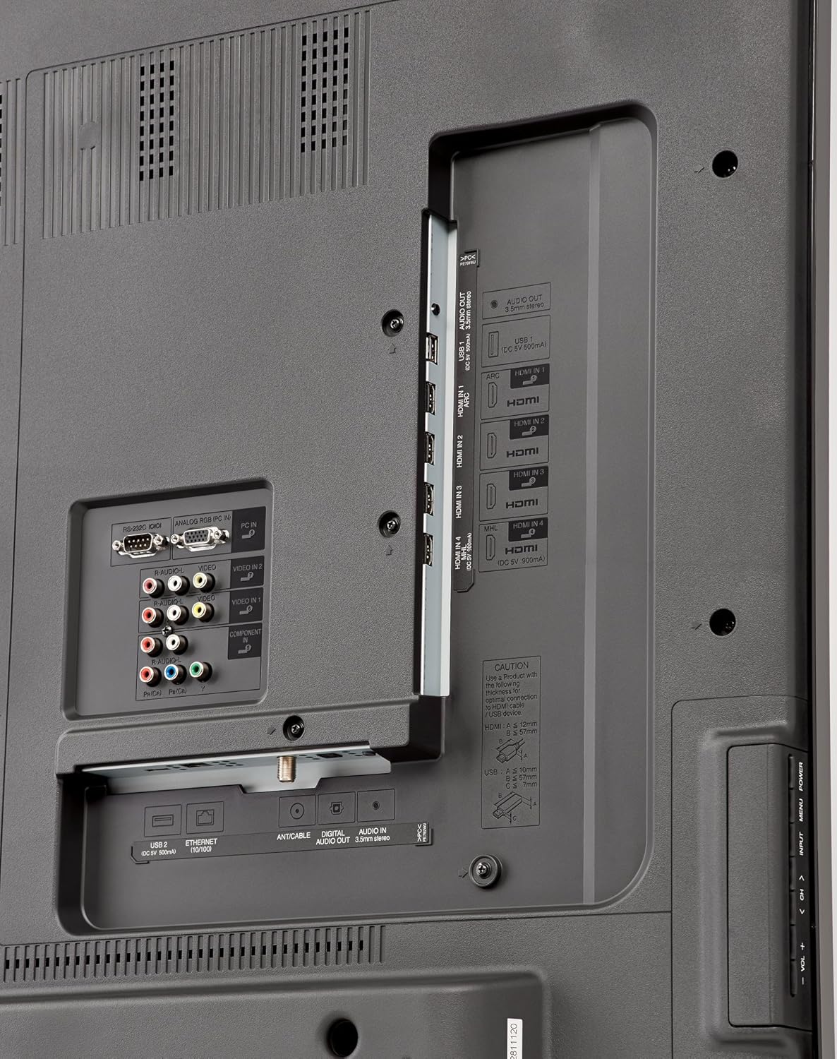 - Inputs: 4 HDMI, 2 USB, PC input, RS-232C, MHL