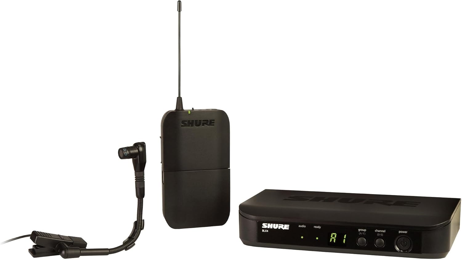 - Components: BLX4 single-channel receiver, BLX1 bodypack transmitter, BETA 98H/C clip-on instrument mic