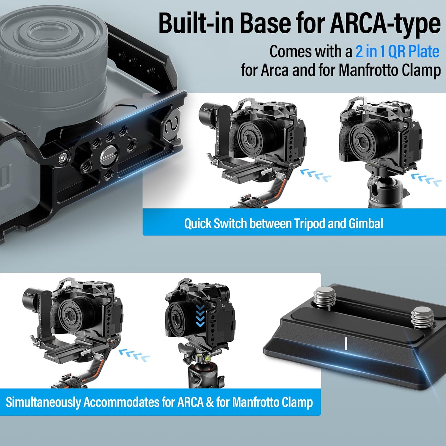 - Quick Release Plate: Includes 2-in-1 quick-release plate for Arca or Manfrotto systems