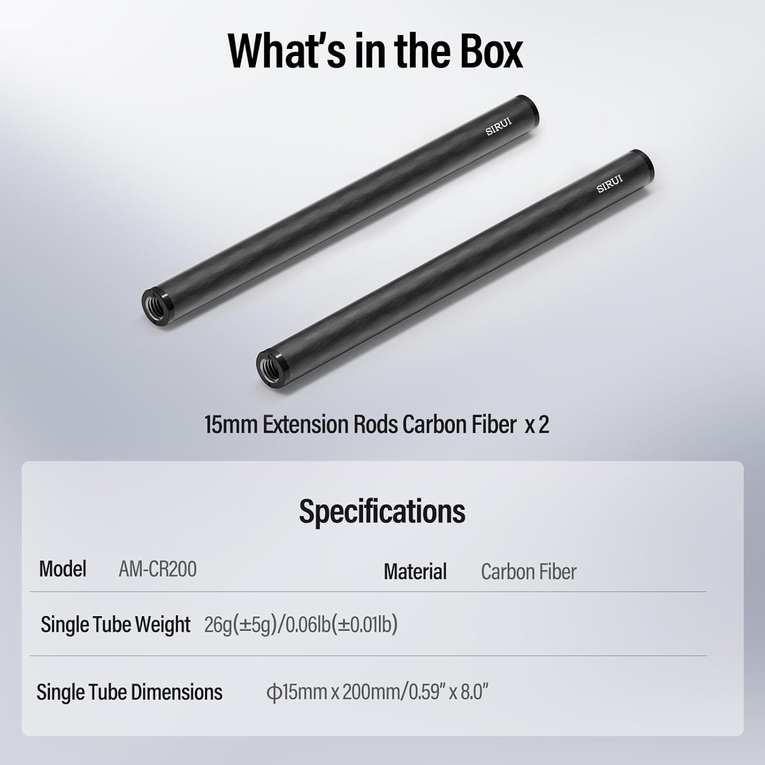 Sirui AM-CR200 15mm Carbon Fiber Camera Rail Rods, 8 inch (2-Pack)