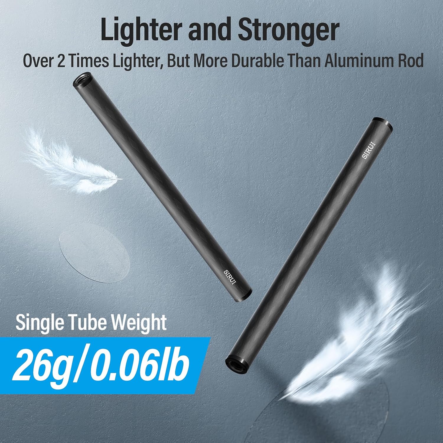 The SIRUI 15mm Carbon Fiber Rods provide a lightweight yet sturdy solution for mounting accessories onto your camera rig. Compatible with a wide range of support systems, these rods offer flexibility and stability for professional filmmakers and photographers.