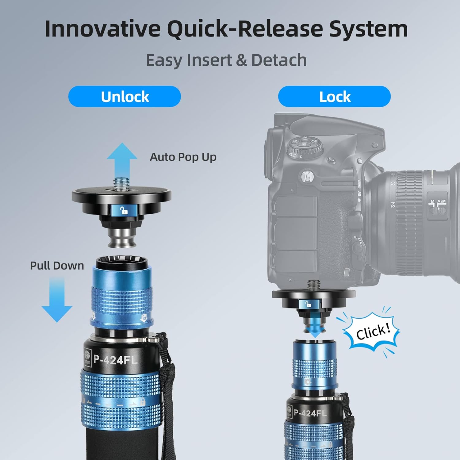 The SIRUI P-424FL Carbon Fiber Monopod is designed for photographers and videographers seeking stability and flexibility. This monopod features a modular design, allowing it to transform into a mini tripod or extension rod. With a quick-release system, 360° panning, and a robust carbon fiber build, it's the perfect companion for capturing sharp, smooth images and videos in any environment.