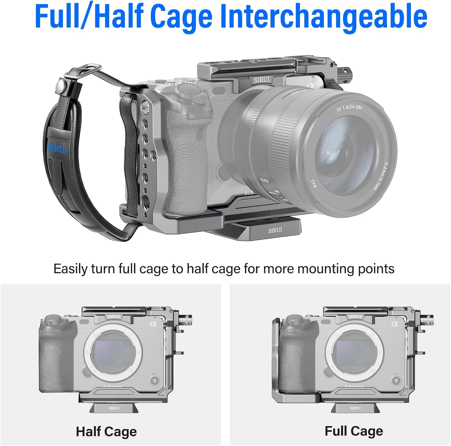 Introducing the SIRUI Camera Cage, meticulously designed for the Sony FX3 and FX30 cameras. Crafted from lightweight, high-strength aluminum, this cage provides versatile mounting options, ensuring your camera is ready for any shooting scenario.