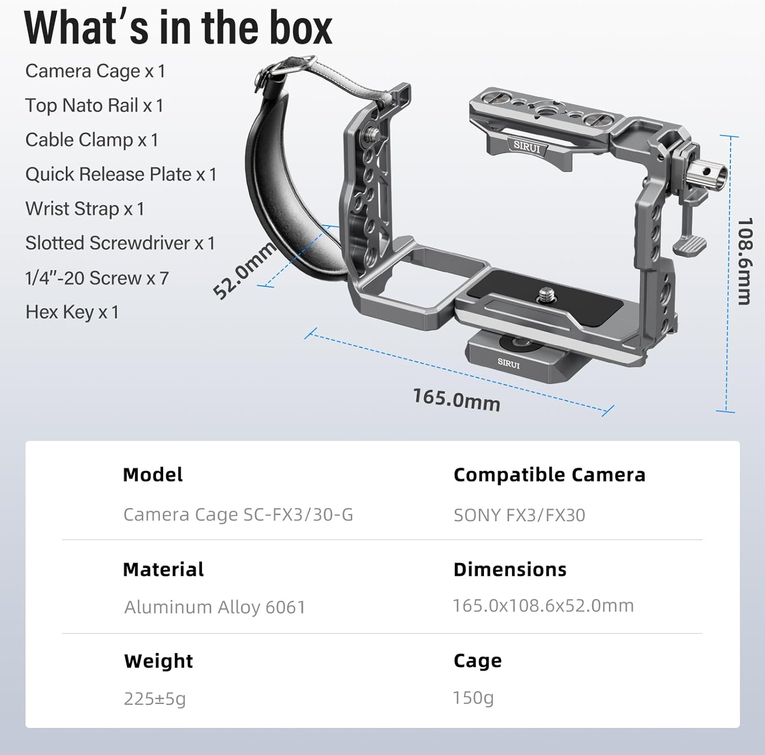 - Compatibility: Sony FX3, Sony FX30, DJI RS2, RSC2, RS3, RS3 Pro