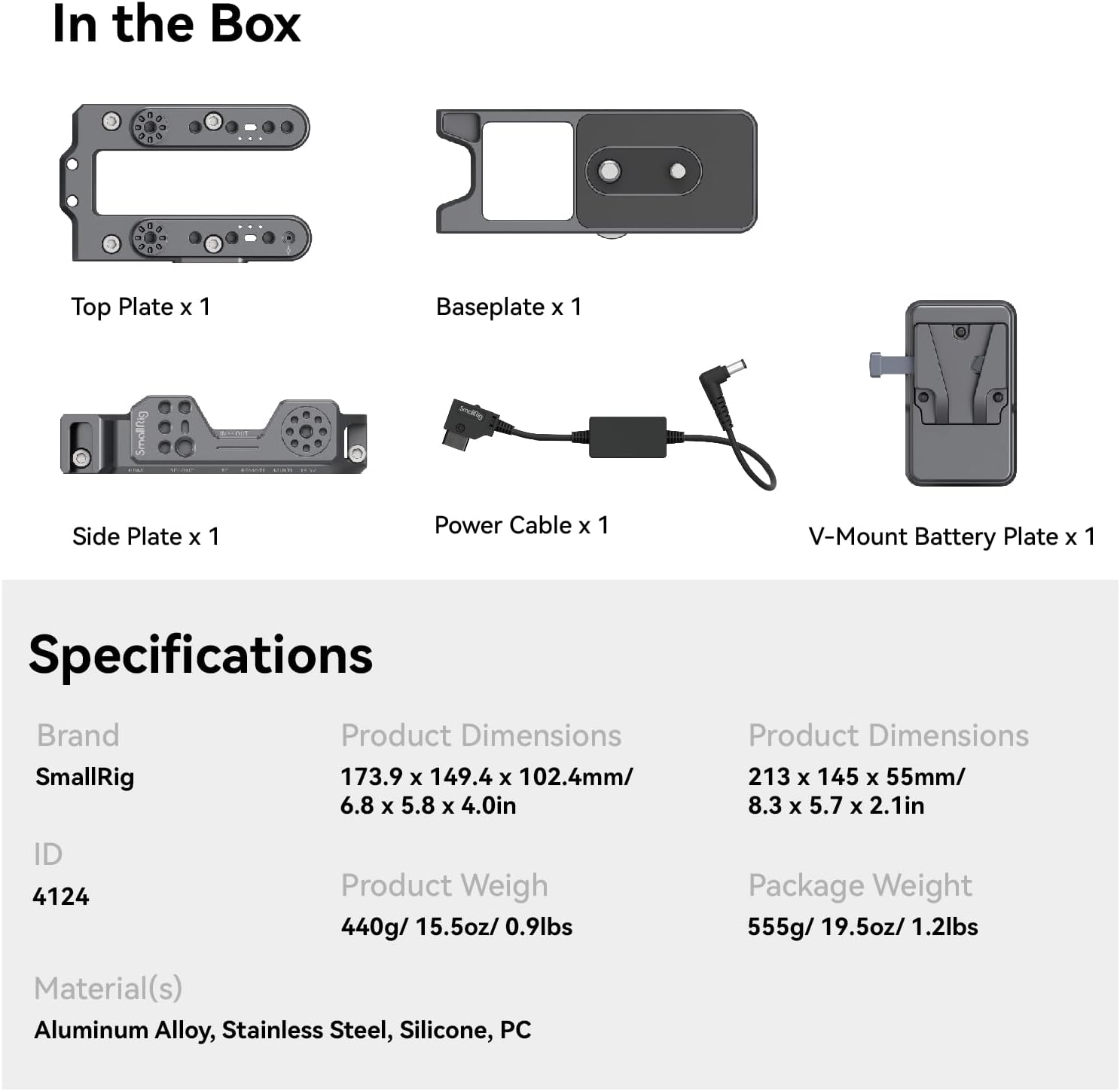 SmallRig 4124-CF FX6 Camera Cage Kit V-Mount Battery Plate