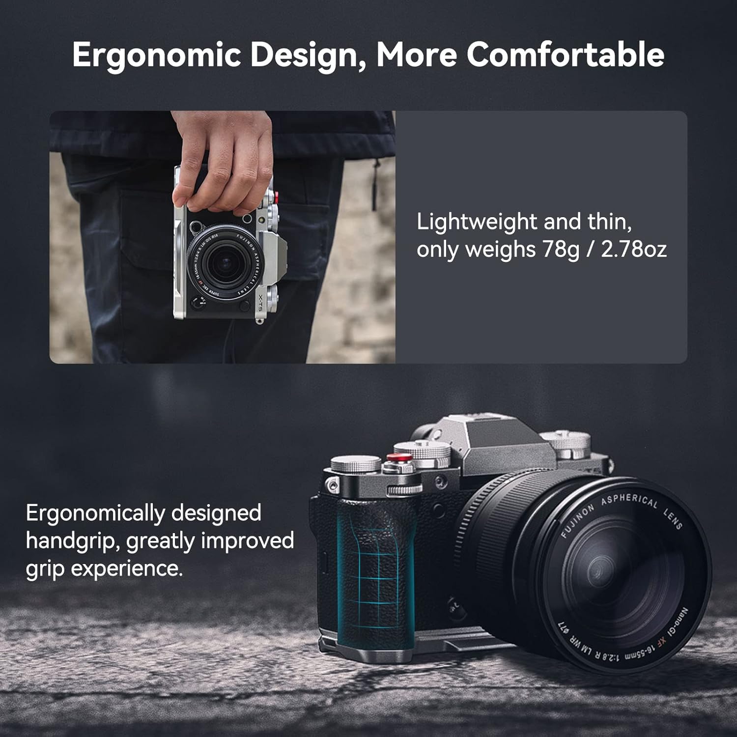 Introducing the SmallRig 4136-CF Handgrip, meticulously designed to provide improved ergonomics, secure handling, and enhanced functionality for your FUJIFILM X-T5 camera. Its lightweight construction, integrated Arca-Swiss compatibility, and thoughtful features make it an essential accessory for photographers on the go.