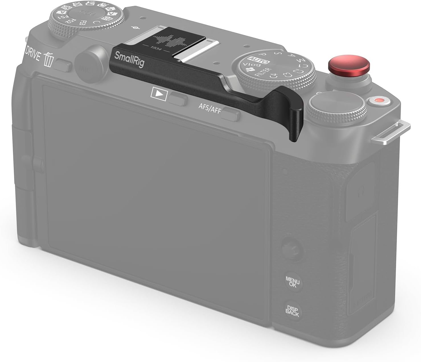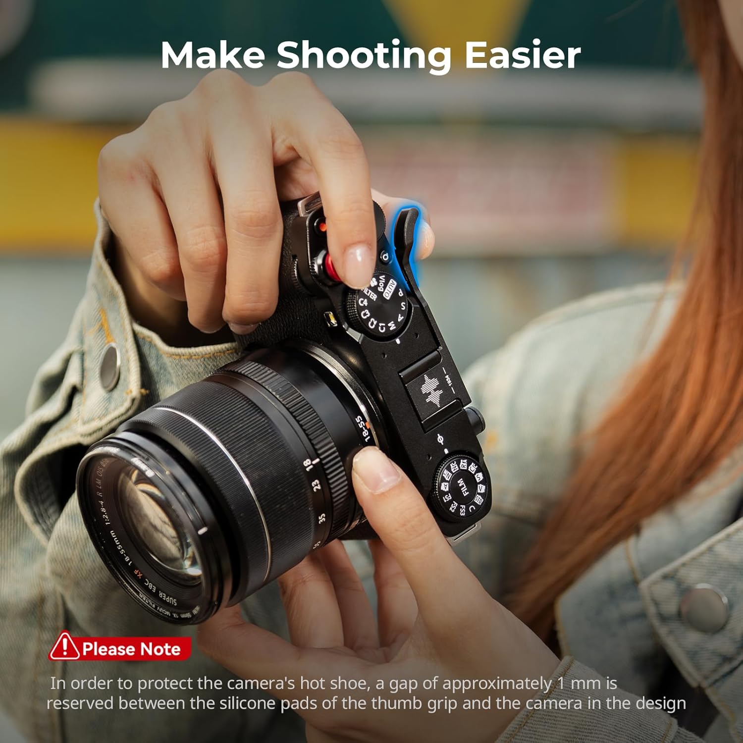 Introducing the SmallRig Thumb Grip with Hot Shoe Cover, designed for FUJIFILM X-M5 cameras. This accessory enhances grip and improves safety while protecting the camera's hot shoe.