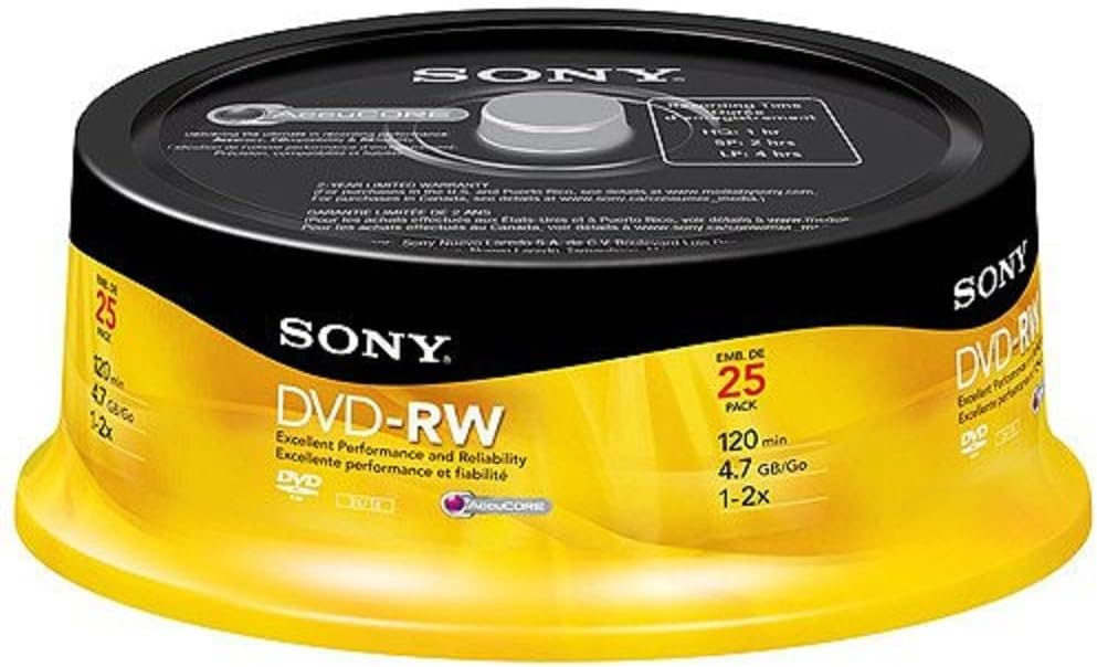 The Sony 25DMW47RS2 DVD-RW Discs provide a reliable solution for storing digital content. With a capacity of 4.7GB and compatibility with most DVD players, these discs are perfect for archiving videos, audio, and multimedia files.