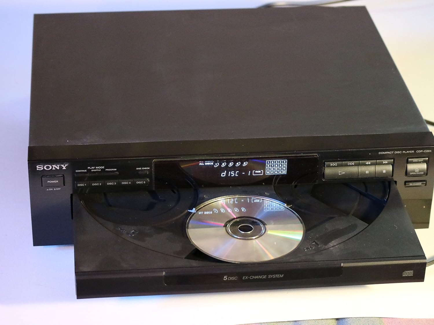 The Sony CDP-C265 Compact Disc Player Changer brings back the joy of listening to your CDs. Featuring a 5-disc carousel and exchange system, it allows you to load multiple discs for continuous playback.