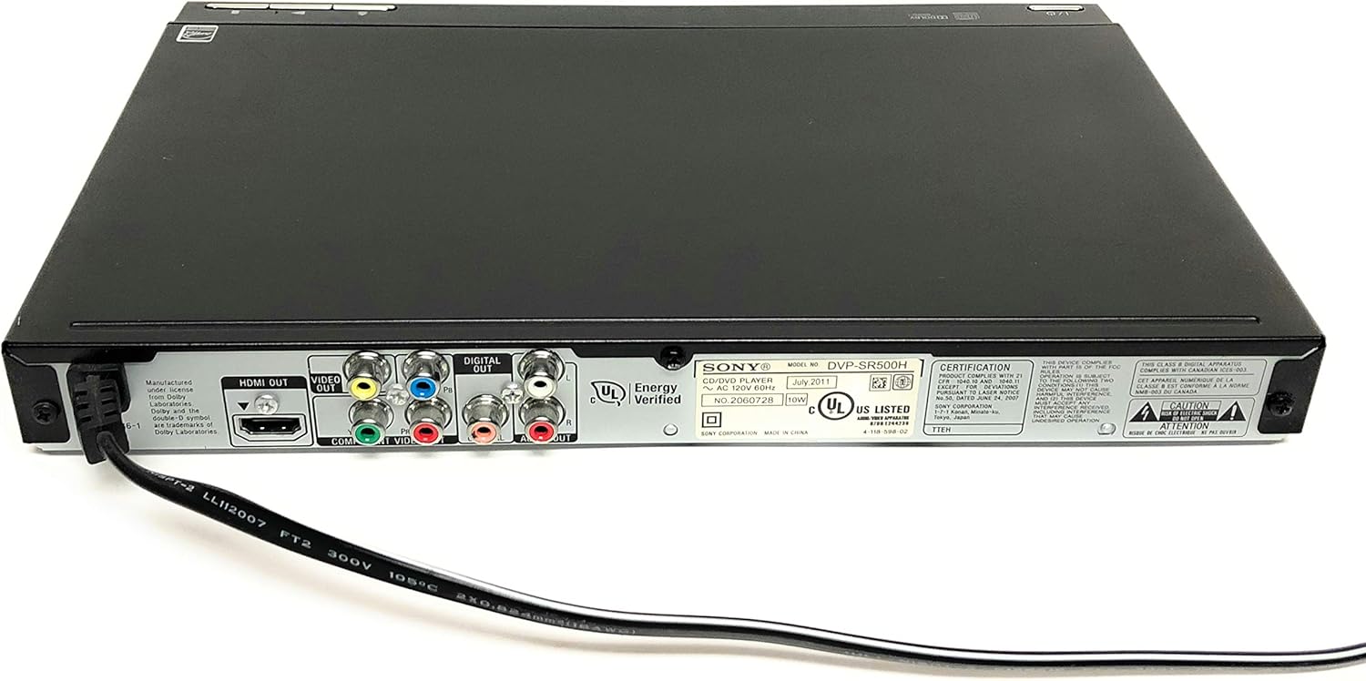 Rediscover your DVD collection with the Sony DVP-SR500H upscaling DVD player. This player enhances your standard DVDs to near high-definition quality via HDMI, providing improved picture quality on your HDTV. With support for multiple formats and energy-efficient design, it's a great addition to any home theater setup.