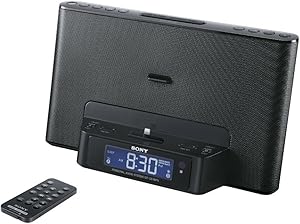 The Sony ICF-CS15iPN Clock Radio Speaker Dock is the perfect bedside companion for iPhone and iPod users. Featuring a Lightning connector for newer Apple devices, this clock radio allows you to charge your device while enjoying high-quality digital audio with MEGA BASS and MEGA Xpand sound options. Control your device and the radio from across the room with the included remote.