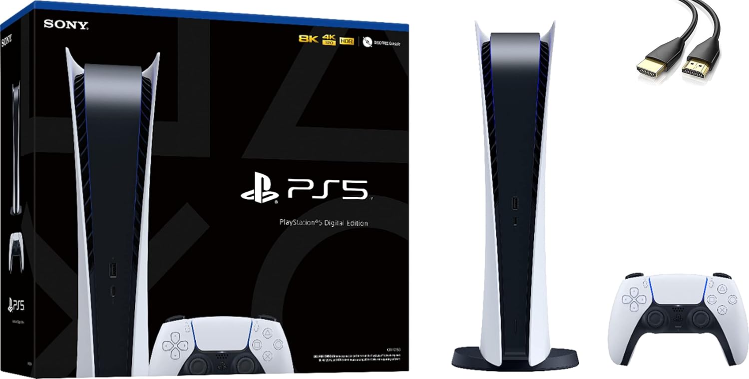 The PS5 PlayStation 5 Digital Edition Console offers lightning-fast loading speeds, stunning graphics, and immersive gameplay. Experience a new generation of gaming with 4K-TV compatibility, an ultra-high-speed SSD, and advanced wireless connectivity.