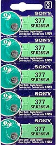 The Sony SR626SW Battery is a dependable power source for your small electronic devices, ensuring long-lasting performance with a mercury-free design. **Specifications:** * **Battery Type:** SR626SW * **Voltage:** 1.55V * **Mercury Content:** 0% * **Quantity:** 5 batteries per packWe partner with Amazon and other retailers to provide accurate product information and convenient access to purchase options. As an Amazon Associate we earn from qualifying purchases.