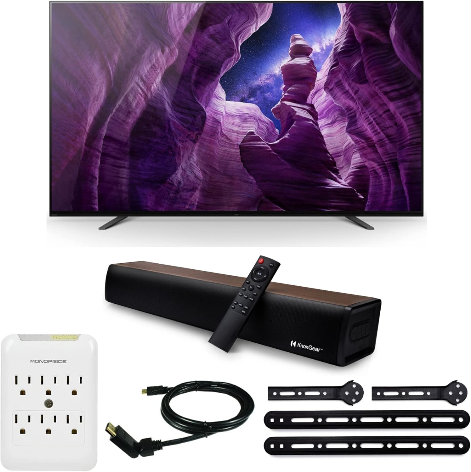 Immerse yourself in stunning picture quality and exceptional audio with the Sony XBR-55A8H 55-Inch BRAVIA OLED 4K Smart TV. This bundle includes a soundbar, bracket mount, HDMI cable, and surge protector, offering a complete home entertainment solution.