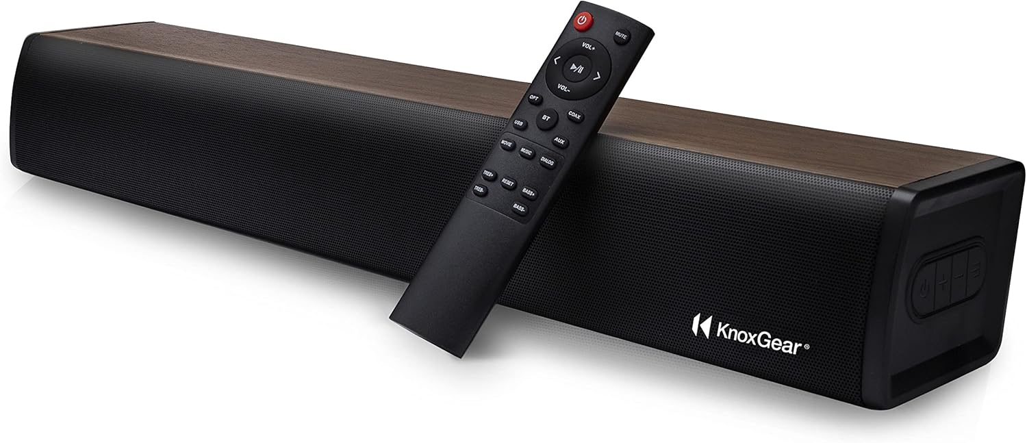 - Soundbar: 60-Watt Compact Wireless 2.0-Channel Soundbar with Bluetooth 5.0 (Black/Oak)