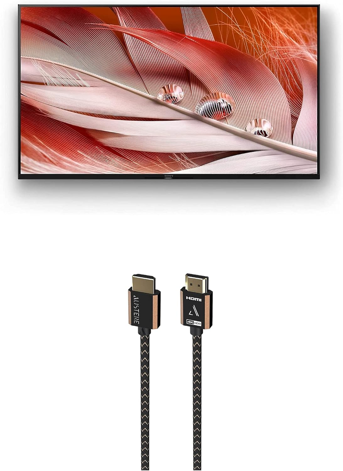 Experience the Sony XR50X90J 50" 4K Bravia Smart TV, bundled with the Austere III Series 4K HDMI Cable, delivering exceptional picture quality and immersive audio for a superior entertainment experience.