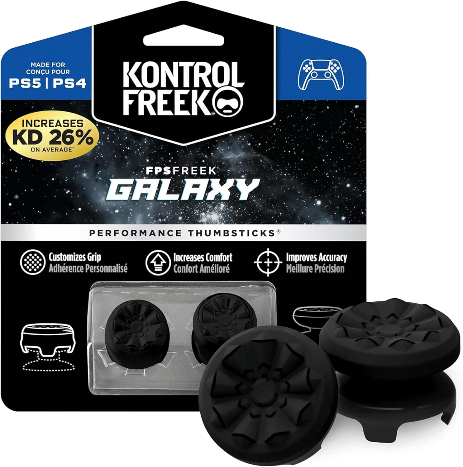 The SteelSeries KontrolFreek FPS Freek Galaxy Black Performance Thumbsticks for PlayStation 4 (PS4) and PlayStation 5 (PS5) offer enhanced control, accuracy, and comfort for first-person shooter games. With a combination of one high-rise and one mid-rise stick, these thumbsticks improve your aim and grip, resulting in a better gaming experience.
