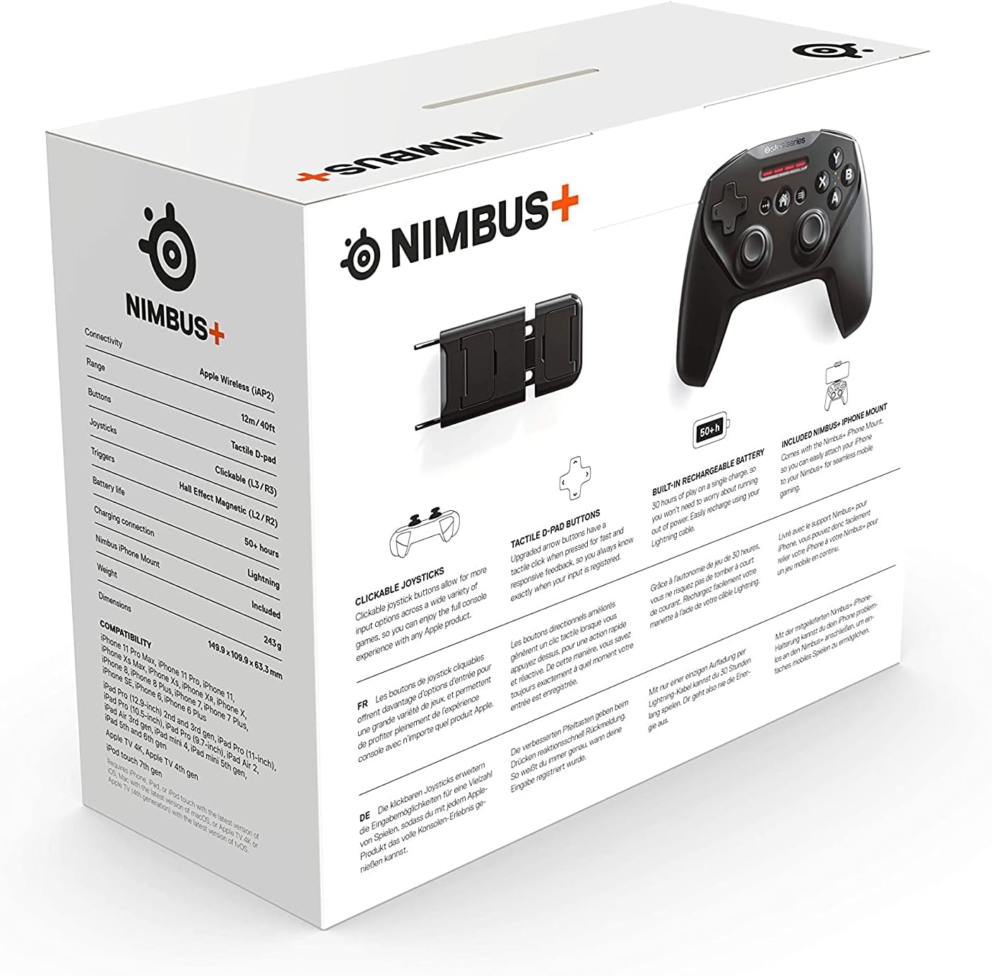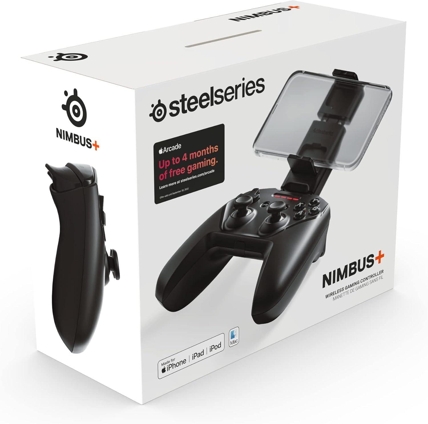 The SteelSeries Nimbus+ Bluetooth Mobile Gaming Controller brings console-quality gaming to your Apple devices. Designed specifically for iOS, iPadOS, and tvOS, this controller features an ergonomic design, responsive controls, and a long-lasting rechargeable battery. Includes an iPhone mount for convenient gaming on the go and up to 4 Free Months of Apple Arcade.