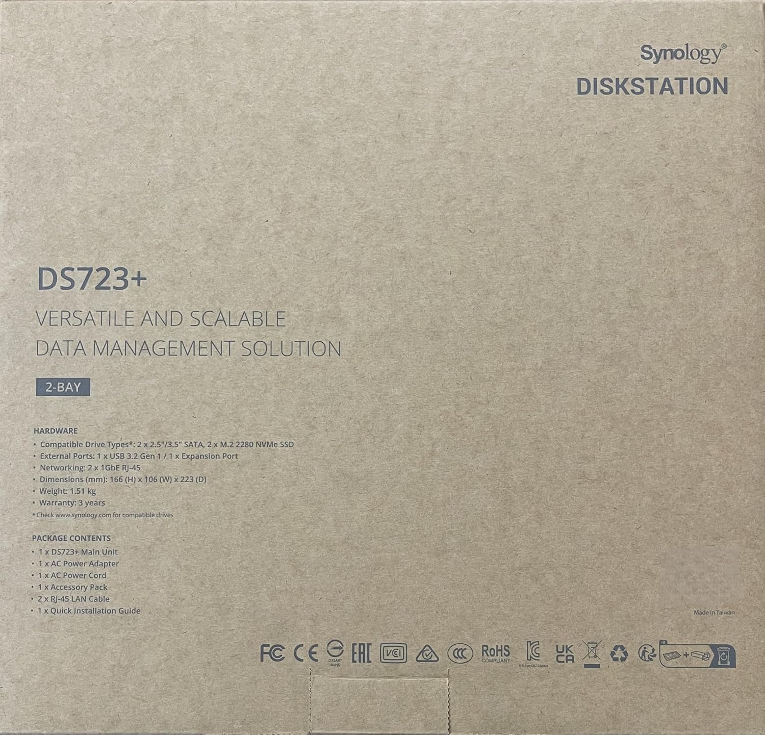 The Synology DS723+ is a compact and versatile 2-bay NAS solution perfect for homes and small businesses. This bundle includes two 3TB WD Red Plus drives for a total of 6TB of storage, offering a comprehensive solution for data management, sharing, and protection. Powered by Synology DiskStation Manager (DSM), it provides a flexible all-in-one solution for data sharing, synchronization, backup, and surveillance.