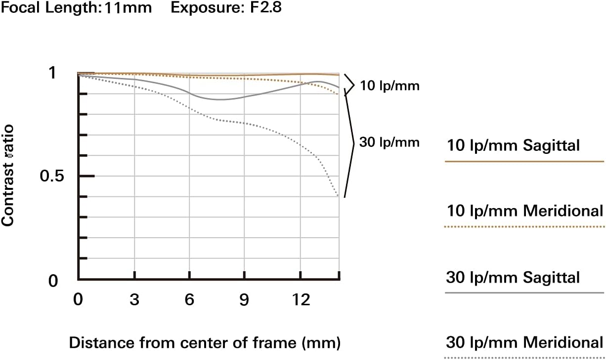 - Minimum Object Distance (MOD): 5.9" at 11mm, 9.4" at 20mm