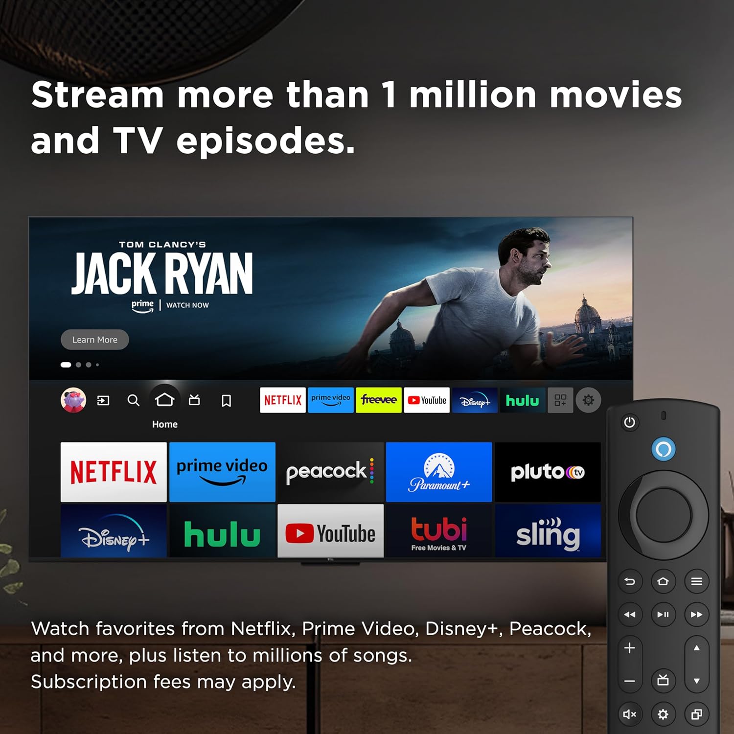 * **Resolution:** 4K Ultra HD * **HDR:** Dolby Vision, HDR10, & HLG * **Audio:** Dolby Atmos * **Smart TV Platform:** Fire TV * **Refresh Rate:** 60 Hz * **Connectivity:** Wi-Fi, HDMI * **Voice Control:** Amazon Alexa Built-in, Apple Airplay Compatibility * **Color:** BlackWe partner with Amazon and other retailers to provide accurate product information and convenient access to purchase options. As an Amazon Associate we earn from qualifying purchases.